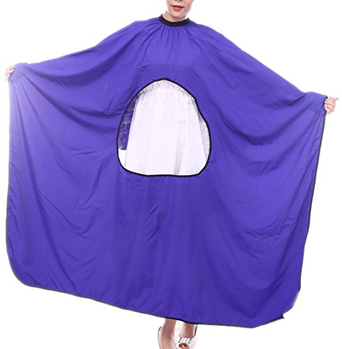 Transparent window - Featuring a transparent veiwing window on the front,ensuring you can still do what you like such as communicating with your frinds with the cellphones,tablets,reading books etc,a good way to help you kill time while you are having your hair cut,colored or permed without having to take their hands out from the cape.