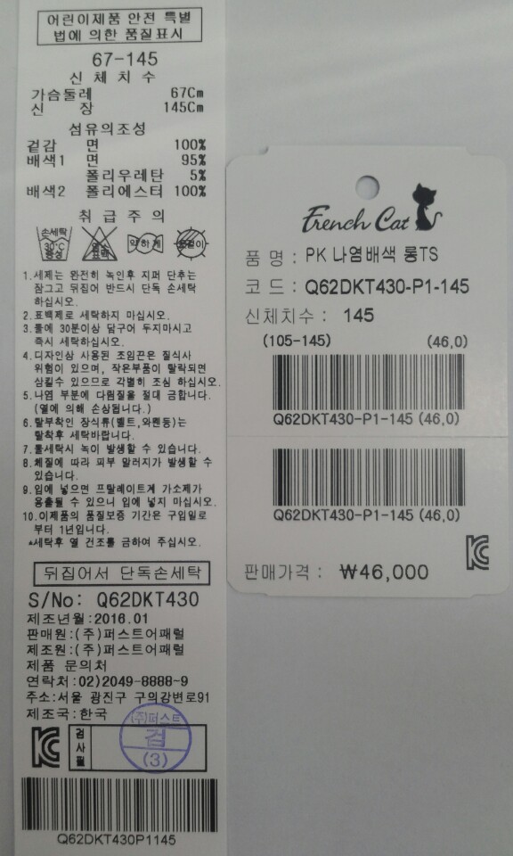 ■소 ; ; ; ; ; ; 재 : 겉감 : 면 100%
