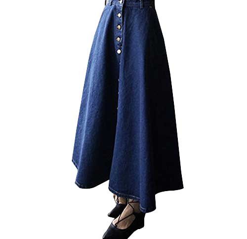 -. Title : レディース スカート ミモレ丈 ロングスカート マキシスカート フレアスカート デニム ジーンズ ブルー 青