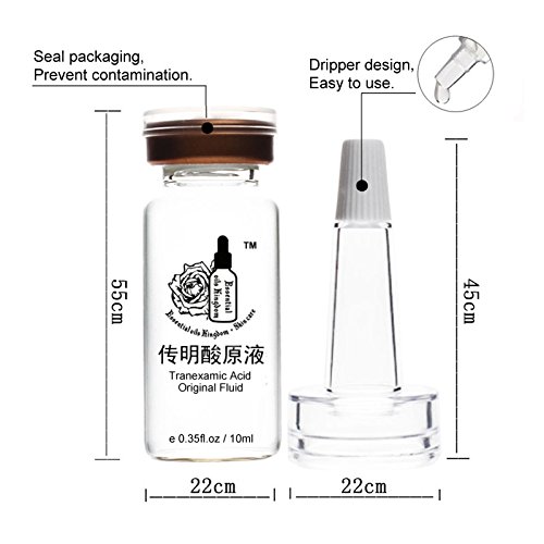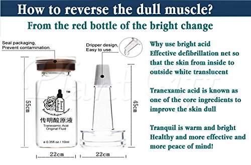 -. Feature : TRANEXAMIC ACID SOLUTION IS A PROTEASE INHIBITOR, can enter the dermis layer directly involved in the synthesis of collagen, can cut off due to ultraviolet radiation and produce melanin pathways, so that dark cell molecules dissolve efficient whitening / TRANEXAMIC ACID CAN INHIBIT THE MELANIN ENHANCER GROUP, and then completely cut off due to ultraviolet radiation and the formation of melanin pathways. That is, so that dark spots no longer become thick, expand and increase, which can effectively prevent and improve the skin pigment deposition. / TRANQUIL ACID AND TRADITIONAL WHITENING INGREDIENTS CAN EXPRESS THE EFFECT OF STABILITY, do not need all kinds of carrier protection delivery effect, still can achieve whitening effect, and no irritating effect. / SAFETY WARNING-For external use only. Other than aromatherapy, dilute with a carrier oil. For topical use, rub a very small amount on the inside of your elbow area to test for any allergic reaction before use. Keep out of the reach of pets. Essential oils can be potentially toxic to pets at certain concentrations. Cats can be especially sensitive to essential oils. Avoid contact with eyes, keep out of the reach of children. If pregnant, consult with your health care provider before use. / 50+ BESTSELLERS: Basil, Bergamot, Cinnamon, Citronella, Clary Sage, Clove Leaf, Coriander, Cypress, Eucalyptus, Frankincense, Geranium, Ginger, Green Tea, Jasmine, Juniper Berry, Lavender, Lemon, Lemongrass, Lily Flower, Mandarin, Marjoram, Myrrh, Neroli, Orange, Oregano, Patchouli, Peppermint, Pine, Roman Chamomile, Rosemary, Sandalwood, Spearmint, Tea Tree, Thyme, Vetiver, Wintergreen, Ylang Ylang, Aloe Vera, Argan, Coconut, Evening P.R.Imrose, Flaxseed, Grapeseed, Jojoba, Pomegranate seed.