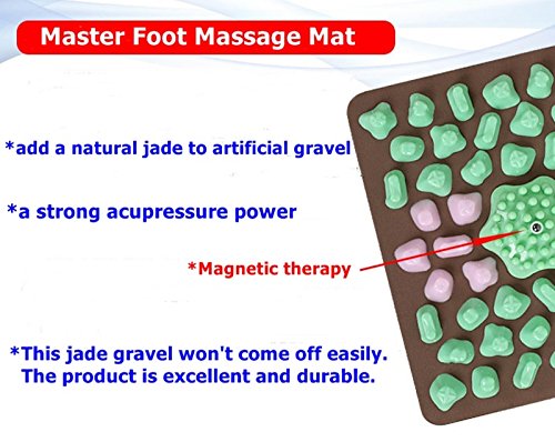 - Feature : add a natural jade to artificial gravel , a strong acupressure power / quality : natural jade powder,bio ceramics,PVC + Magnetic / Magnetic therapy, Relax the nerve ache, ease tiredness of the muscle,Remove toxin, keep fit / Newly developed indoor, office, kitchen acupressure and acupuncture meridians as acupressure Health Mat Health Mat is a superior effect. / This jade gravel won't come off easily. The product is excellent and durable.