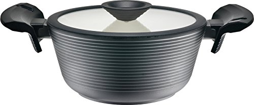-. Feature : Ceramic Non-stick Coating / Cast Aluminum / Glass Lid with Silicone Handles / Safe for gas/electric ranges / Dishwasher-safe