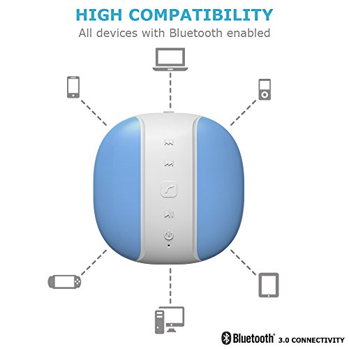 -. Title : Voads® - Bluetooth Shower Radio - Waterproof Wireless Speaker - Compatible with Iphone, Samsung & Other Android Tablets & Phones - Portable & Water Resistant - Indoor & Outdoor Speaker - Built-in Mic - Easy Control - Blue & White - 1 Year Warranty