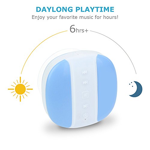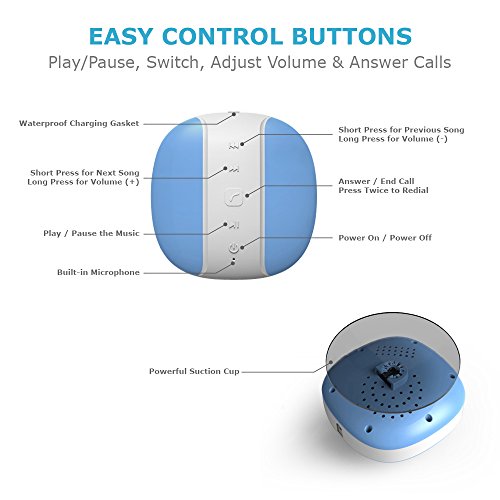 -. Feature : Amazingly Loud Waterproof Speaker - Built-in Passive Subwoofer for Outstanding Bass. / Easy to Control Your Music - Play/Pause, Switch Tracks, Adjust Volume, Answer & Make Phone Calls right from your Shower! / Bluetooth 3.0 Wireless Connectivity - Works Wirelessly with any device including Android & iPhones. / Rechargeable Battery - Supports up to 6hrs+ of Playback Time. / Ideal for Indoor and Outdoor - Enjoy your favorite Music at the Beach, Pool, Boat, Shower, Bathtub, Kitchen and more.
