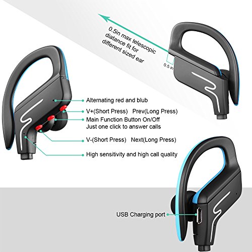 -. Feature : Ergonomic design,fit a stronger, sweat-proof, water-proof and dust-proof / Excellent sound quality with latest Bluetooth chip and APT-X technology,calls clear and reliable / Built-in rechargeable battery,super-time endurance:long standby time up to 180 hours, 8 hours for talking,7 hours for music / Easy To Use - The volume, sound, song selection and telephone controls are all right on the wireless Bluetooth earbuds. Take hands-free calls with built-in mic. For All Bluetooth Devices Including iPhone 6s plus, iPad, iPod and Samsung Huawei smartphone / Integrity of the business, perfect after-sales service, professional technical support.