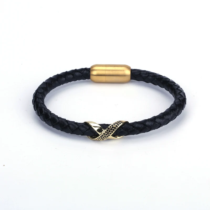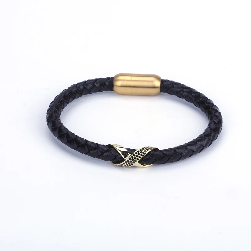 material:leather, 24k gold, silver, black gun plated copper charm pave black cz
