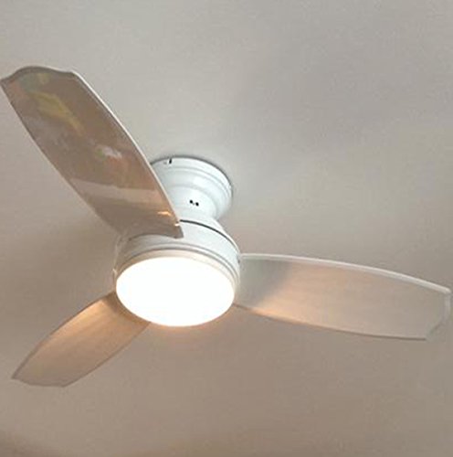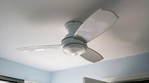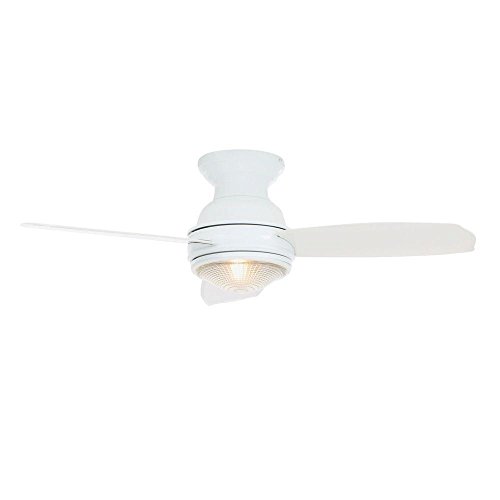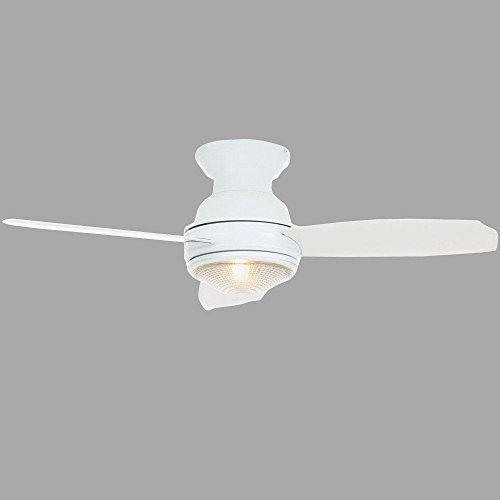 3 blades in white with 12 degree blade pitch for greater air movement. Integrated light kit with clear glass. 3-speed hand held remote control with manual reverse function. The white finish complements a variety of decor styles. Designed for interior use. 153 mm x 15 mm motor offers superior air movement. Airflow 3851.73, electricity use is 48.3 watts and airflow efficiency is 79.68. Ideal for small rooms with blade sweep of 44 in. Flush mount installation is ideal for rooms with low ceilings. UL listed.Feature