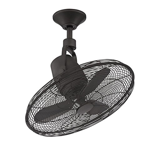 The Home Decorators Collection Bentley III 22 in. Indoor/Outdoor Natural Iron Oscillating Ceiling Fan with remote control has a caged fan design and is great when air circulation needs to be directed or if space is tight. It also has an oscillating feature that sways back and forth, creating a nice breeze. Both fan speed and oscillation can be control by the handy remote control. This fan is also rated for damp locations so it can be used under covered outdoor locations.