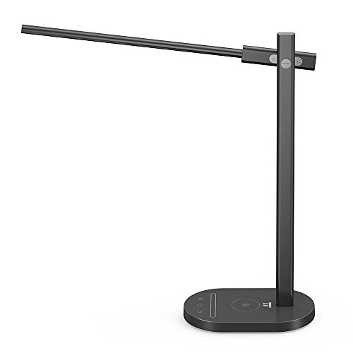 TaoTronics LED Desk Lamp with Wireless Charging Pad, Premium Metal Table Lamp with 5 Color Temperatures (2800-6500K) & 6 Brightness Levels - 5V/1A USB Charging Port, 1 Hour Timer & Memory Function