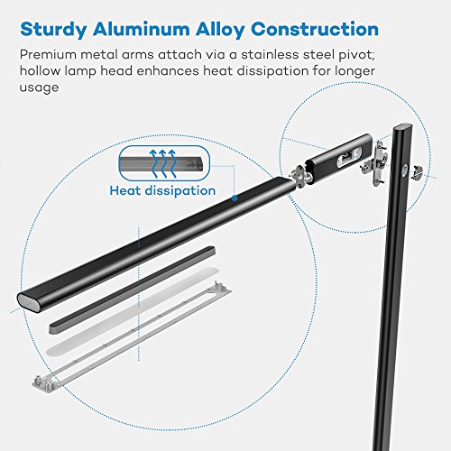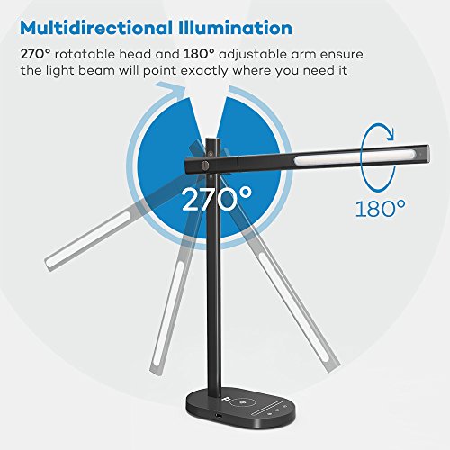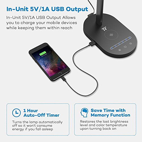 Full featured LED desk lamp: comes with a 5V/1a USB charging port, an Energy-saving 1 hour auto-off timer, and a memory function to restore the last brightness level and color temperature