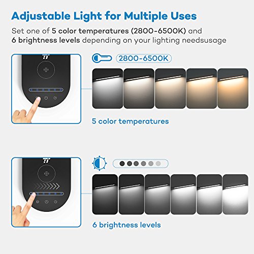 Adjustable light for multiple uses: set one of 5 color temperatures (2800-6500k) and 6 brightness levels depending on your lighting needs