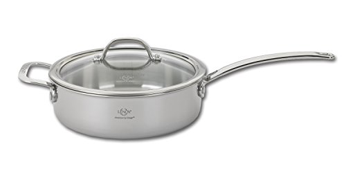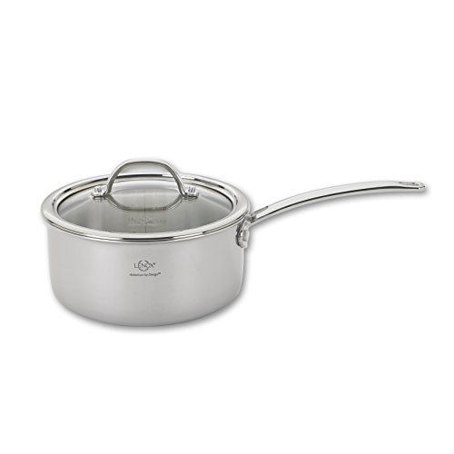 Full Tri-Ply Clad body with a thick aluminum core sandwiched between premium stainless steel ensures even heat distribution along the bottom and sides. 18/10 stainless steel cooking surface will not react with foods. Stainless casted handles are riveted for durability and are angled to provide better leverage for easier use; handles are uniquely casted with an elegant Lenox logo.
