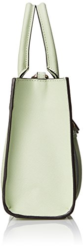 - Feature : Exterior pocket. One interior slip pocket / Mini-size top-handle tote structured with contrast tipping and scalloped front pocket flap / Dual top handles with removable/adjustable cross-body strap with leash clasps