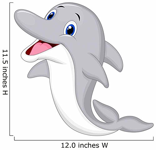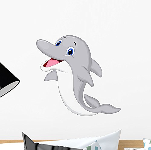 Cute Dolphin Cartoon Wall Decal by Wallmonkeys Peel and Stick Graphic (12 in W x 11 in H) WM91118