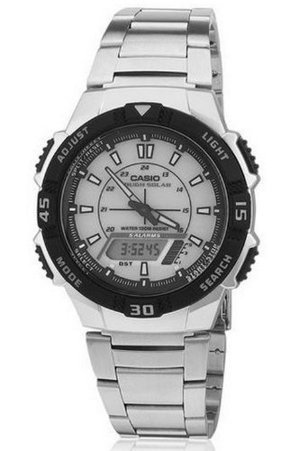 -. Title : Casio Men's AQS800WD-7EV Silver Stainless-Steel Quartz Watch with White Dial