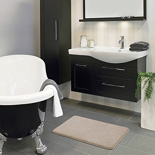GUDLUK Memory Foam Bath Mats, Soft Non Slip Absorbent Bath Rugs, 17 x 24 inch, Beige