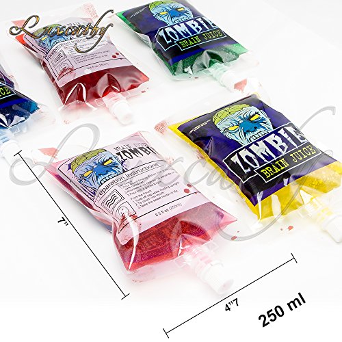 Luxcathy 250ML X 20 Bags Creative Zombie Blood Bag for Party Drinks with Filling Funnel - Thicker and Leakproof Drink Containers, Zombie Party , Black Party and Halloween Favors