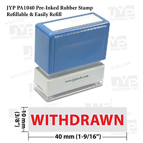 -. Feature : New JYP PA1040 Pre-Inked Rubber Stamp w. Withdrawn / Max. text plate size: 5/16" X 1-1/2" (10 x 40 mm) / Red Ink Color / Easy, Fast, Unlimited Refill, More Than 10,000 Times Used Guaranteed. / Choose one of Five Ink Colors. (Black, Blue, Red, Green, Violet)