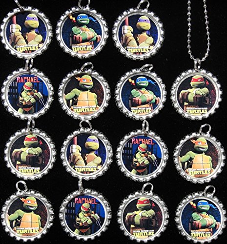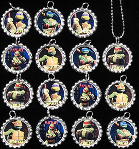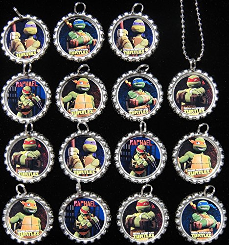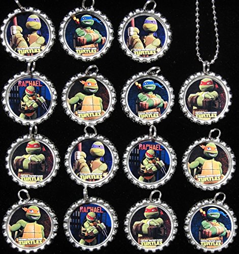 15 TEENAGE MUTANT NINJA TURTLE Flat Bottle Cap Necklaces for Birthday, Party Favor Set 1