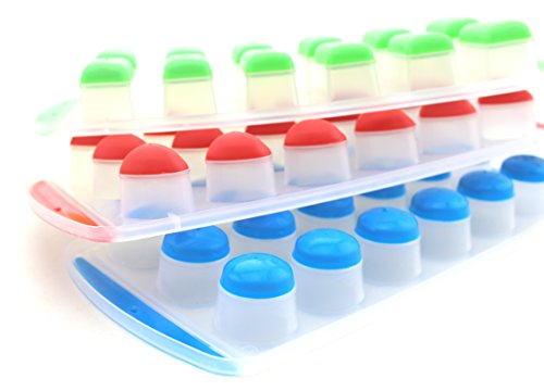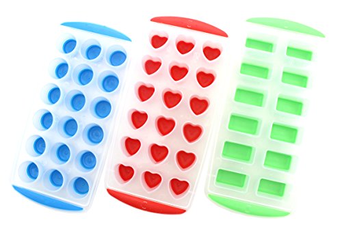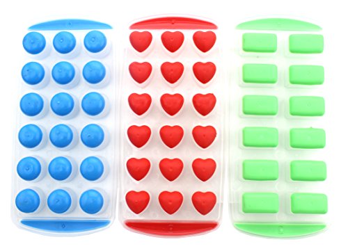 Set of 3 - ZICOME Heart & Round & Rectangle Easy Push Pop out Mini Ice Cube Trays with Flexible Silicone Bottom (3 Colors, 3 Shapes)