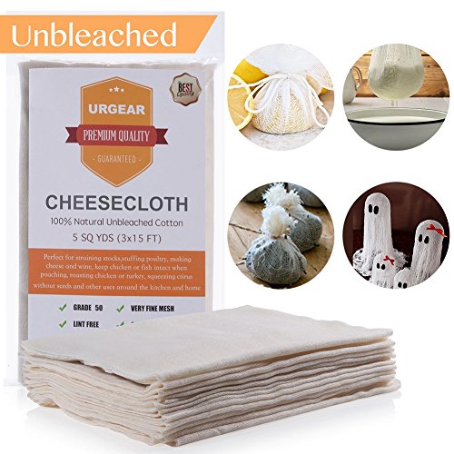 Unbleached Cheesecloth, 45 Sq Ft, Grade 50, 5 Yards, Reuseable, 100% Unbleached Cotton Cheesecloth Strain, Great Filter or Strainer for Cheese/Kombucha scoby/Glass jar/Wine making and More (5 Yards)