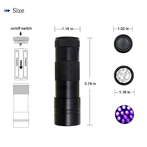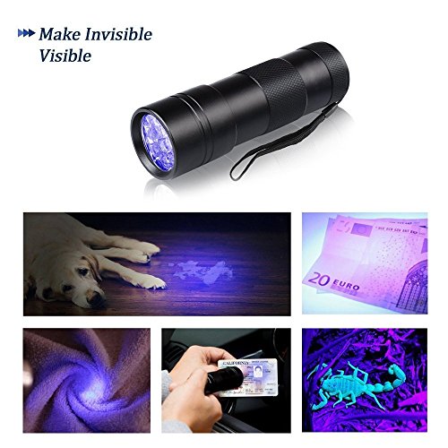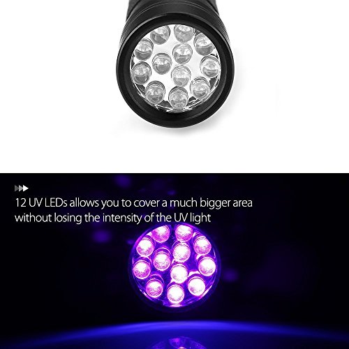 블랙 라이트,Refoss 자외선 라이트 12LED UV라이트 회중전등 위조지폐 대책 눈(째)에는 안보인 얼룩 대책(블랙)
