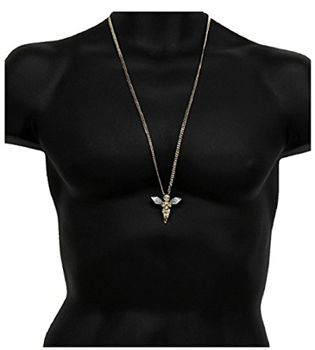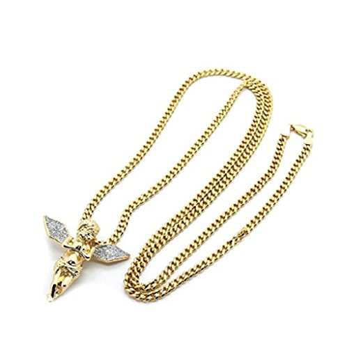 -. Title : Gold Tone Silver Stardust Long Wings Angel Pendant Hip-hop with 3mm 24" Cuban Chain