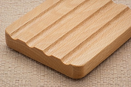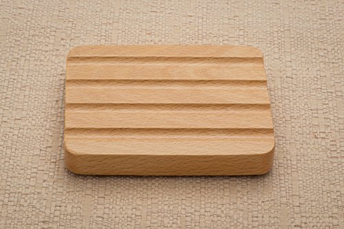 -. Title : Rectangle Grooved - Small (Beech Wood Soap Dish)