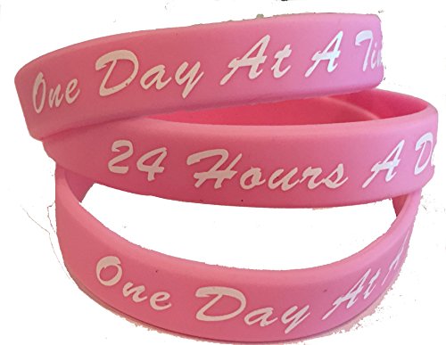 Set of 3 Pink One Day At A Time / 24 Hours A Day Silicone Wrist Bands 2.5" Wristband Bracelet AA NA