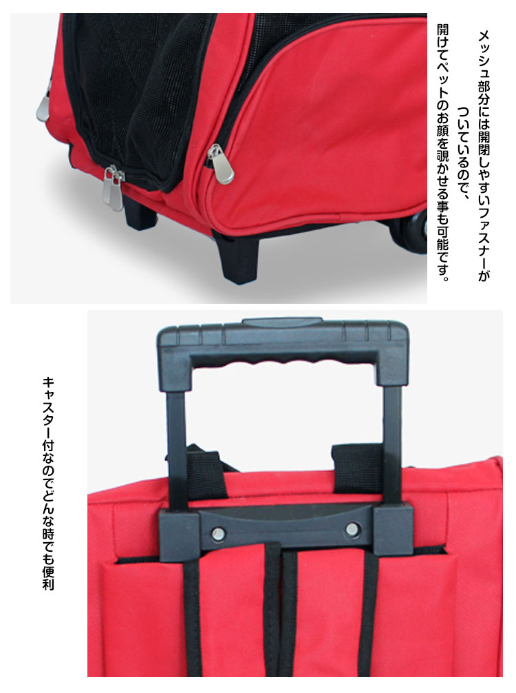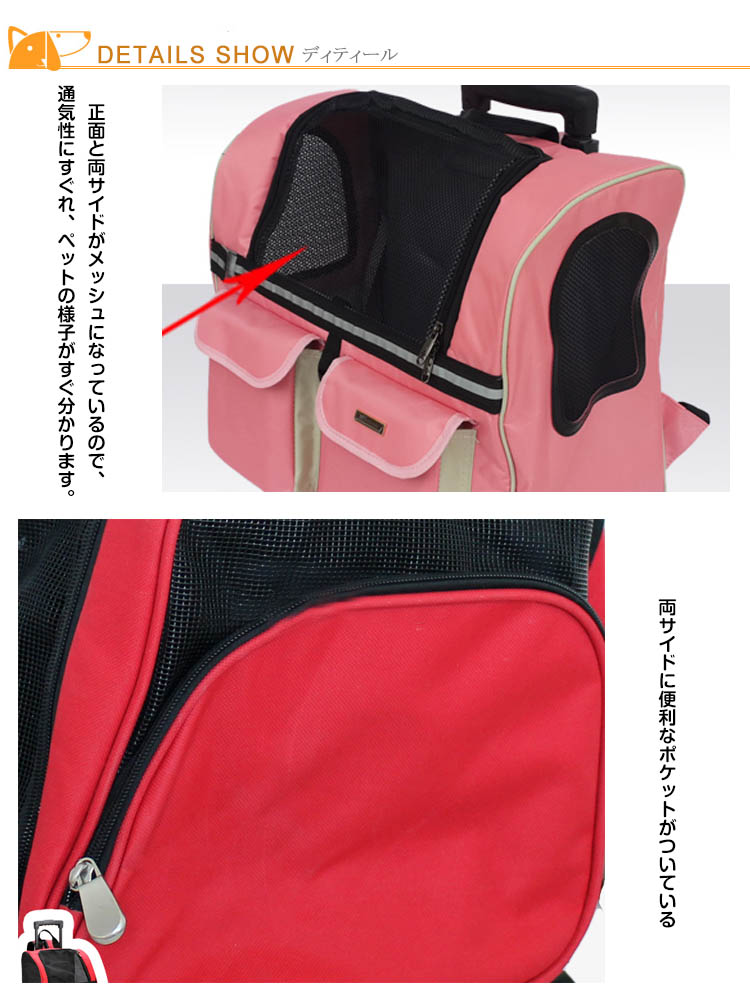 | ペットと一緒に楽しくお出かけができるトラベルキット! 正面側と両サイド側がメッシュになっているので、通気性にすぐれ、ペットの様子がすぐ分かります。メッシュ部分には開閉しやすいファスナーがついているので、開けてペットのお顔を覗かせる事も可能です。サイドには便利なポケットがついているので、ペット用小物収納も便利。ワンちゃんと一緒にご旅行や、車中でワンちゃんの動きが心配の時や、避難時などどんな時でもワンちゃんと一緒にしたい方にオススメ! | |