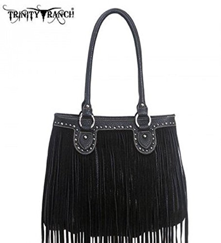 -. Brand : Montana West -. Color : Black -. Department : womens -. Feature : Size:13.5 x 4 x 10 (10.5 Handle) / Meterial: PVC Leather / Clousure: Zipper / Condition: New with tag / Brand: Montana West -. Model : TR09-8562 -. ProductGroup : Shoes -. ProductTypeName : HANDBAG -. Title : Montana West TR09-8562 Trinity Ranch Fringe Design Western Handbag Purse