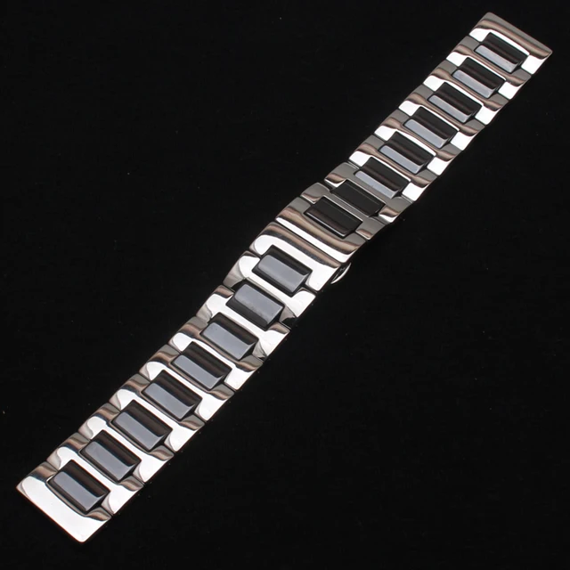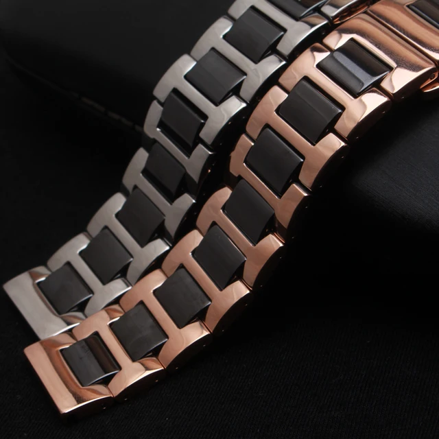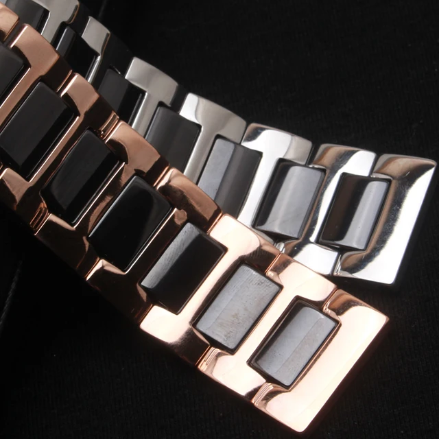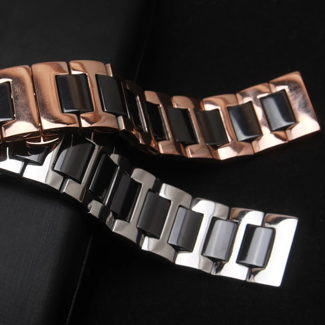 | [해외] 광택 세라믹 로즈 골드 금속 시계 스트랩 팔찌 20 미리메터 22 미리메터 시계 액세서리 butterfly 버클 배포 교체 |