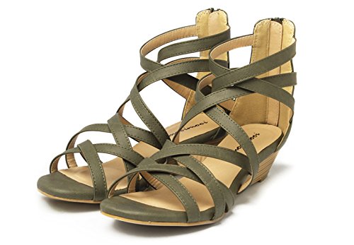 -. Feature : お手持ちのコーデに合わせやすいクロスデザイン。ナチュラルな雰囲気満点のフェイクレザーを使用。まんべんなく甲を覆う細めのラインは素足に◎ / 足首までホールドしてくれるデザイン。さらにバックジップ付きなので脱ぎ履き楽ラク♪ / 約3.5cmのヒールは、ウェッジタイプなので安定感◎ / 足にかかる負担を、インソール全体と、かかと・足指の付け根部分に備えた高反発クッションで緩和します。やわらかく、ワンランク上の履き心地に仕上がりました。 / より多くのお客様に楽しんで頂けるよう、22.0cm~26.0cmの5サイズをご用意しています。