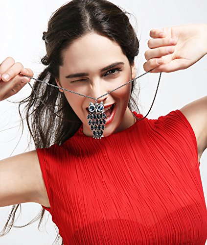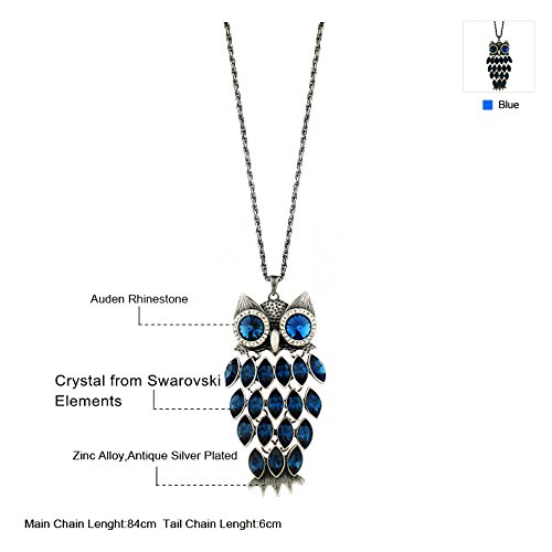 I just wana this loyal owl to stay with you forever. Fastness chain, gorgeous blue gemstones, authentic antique silver plated, no fade. All blue crystals are made with SWAROVSKI ELEMENTS,white Auden Rhinestone