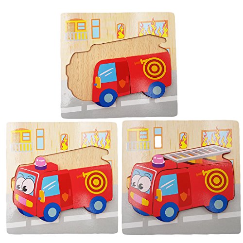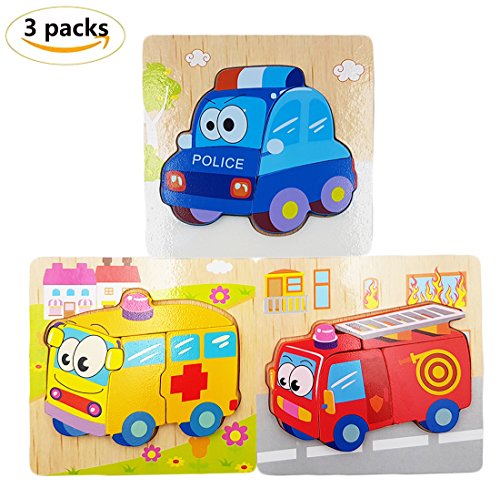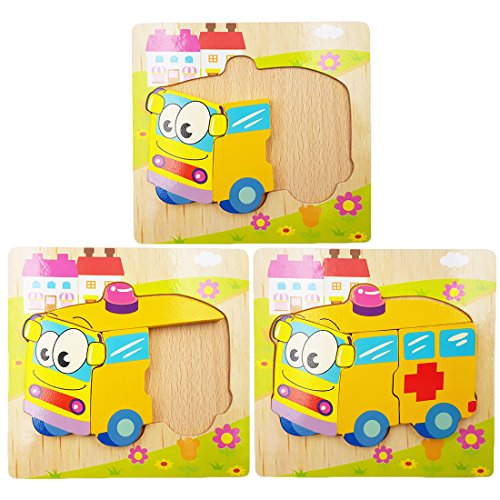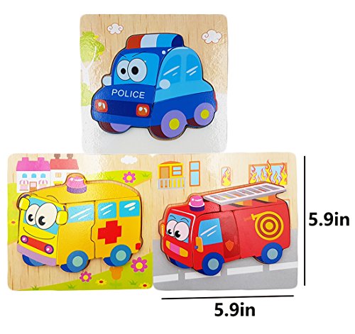 3-Pack Cartoon Vehicle Series Jigsaw Puzzle Sets, 5.9x5.9in-100% Non-toxic and Safe, Made of high quality wood and eco-friendly water paint