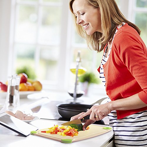 - •EASY FOOD PREPARATION: Large Size 15.4x 11.7 x 0.3Inches,Four Corners Silicone Pad Help Prevent The Board From Moving While In Use,Overflow Groove Can Better Keep The Table Clean.