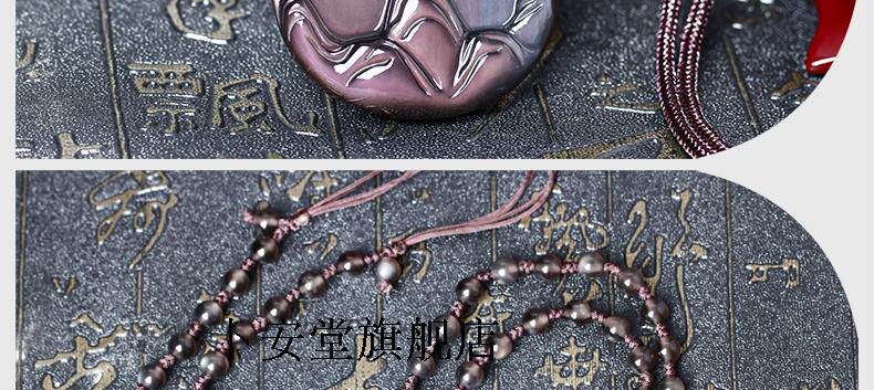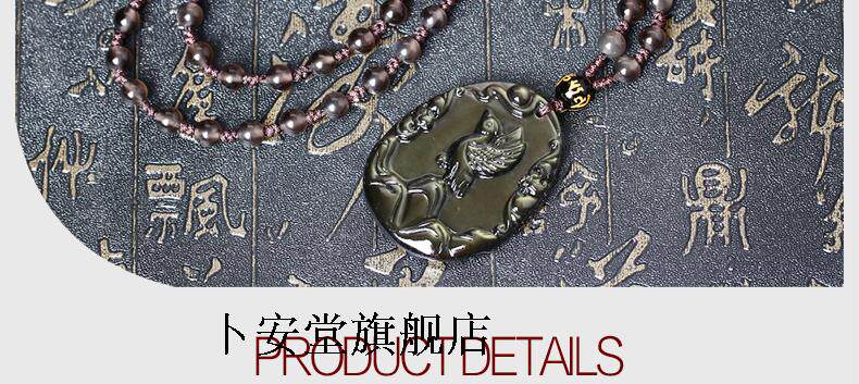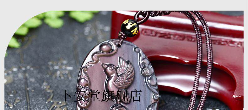 开光鸿利通财喜鹊登梅黑曜石吊坠护身符化太岁吉祥物