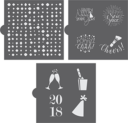 Product Description Our New Years Cookie Stencils - Value Bundle include 3 sheets of holiday themed stencils. Each sheet is (5.9 x 5.5 inches) of food grade plastic. Start a new tradition. 0