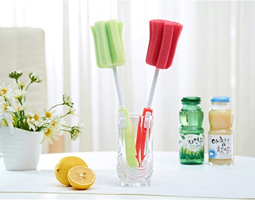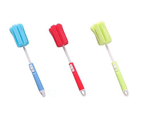 Cindy&Will 3Pcs Multipurpose Scalable Sponge Dish/Baby Bottle/Wine Glasses/Pot/Bowl/Storage Box/Test Tube Cleaning Brushes