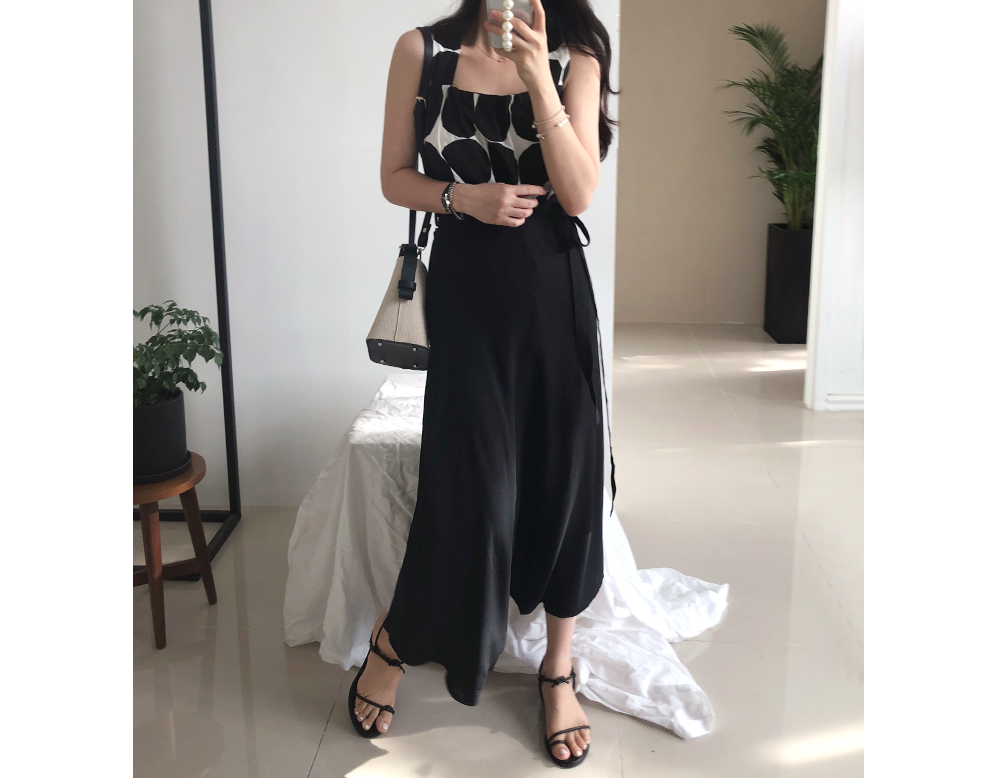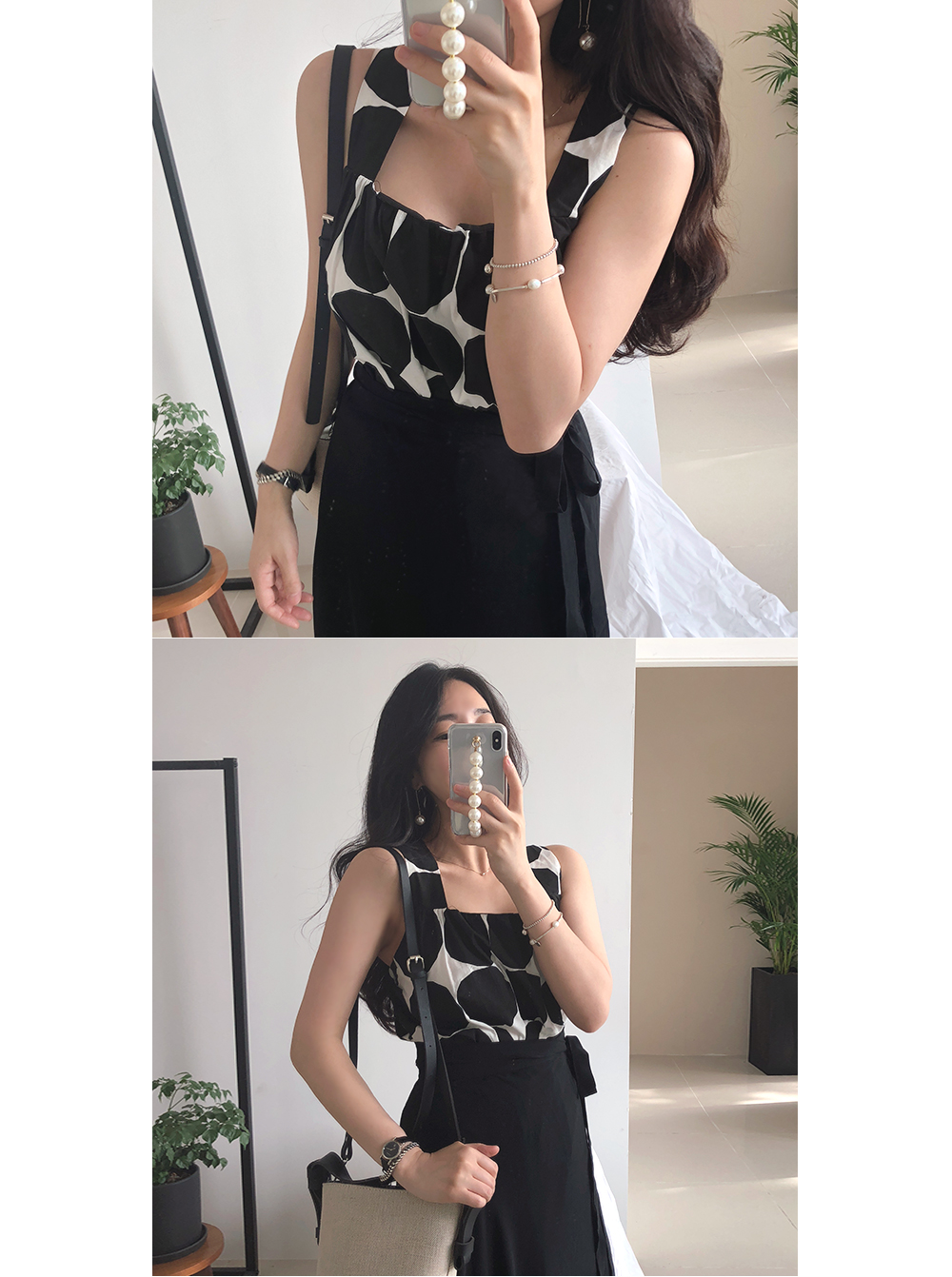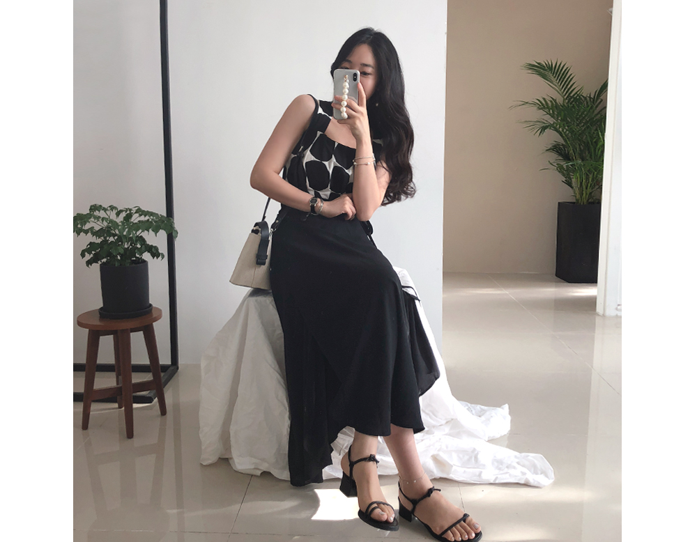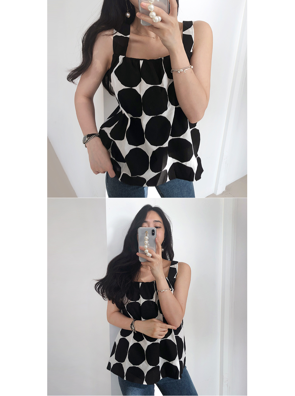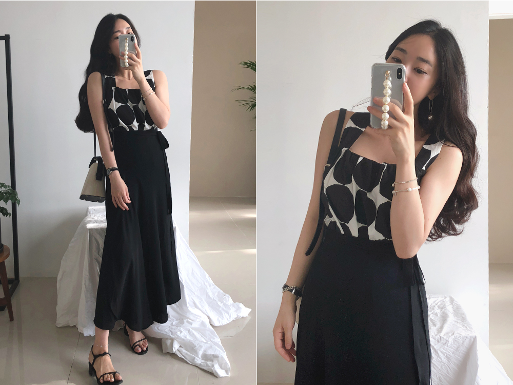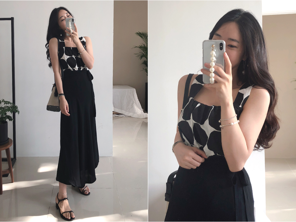 탑은 도트무늬 넓은 나시끈에 A라인으로
