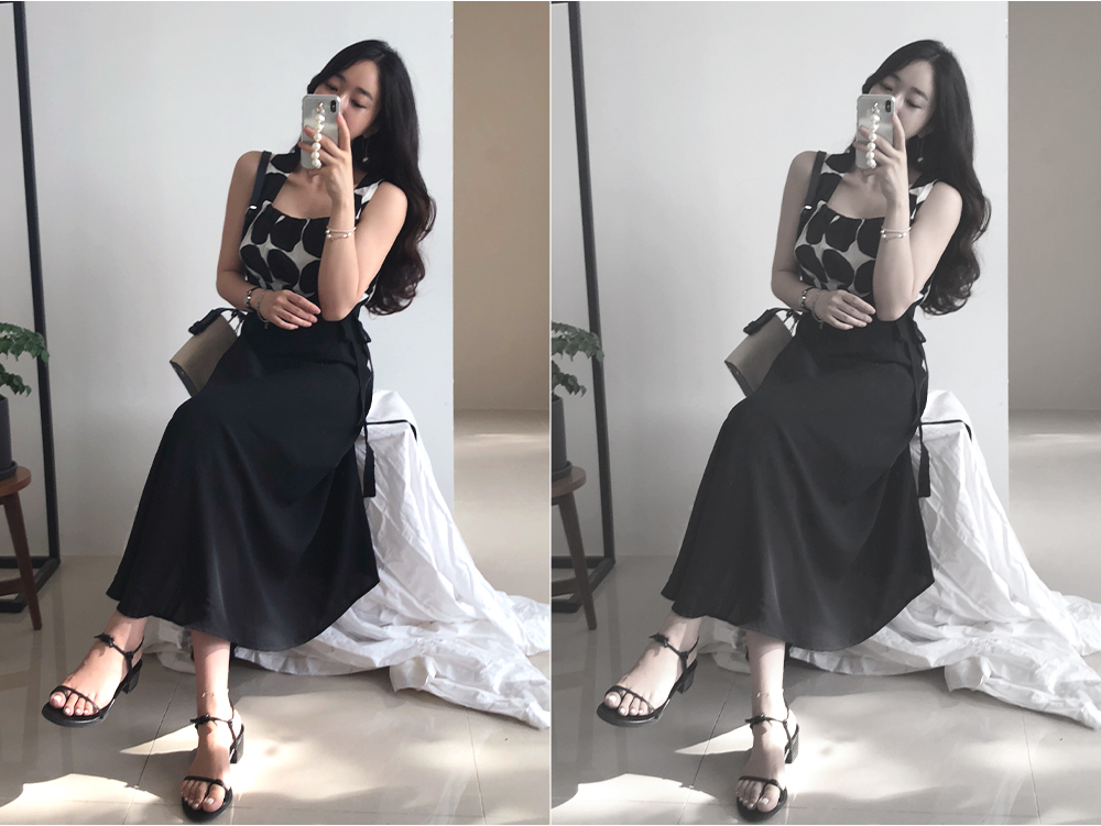 다른 티셔츠와 함께 착용하셔도 나시, 랩스커트 세트로