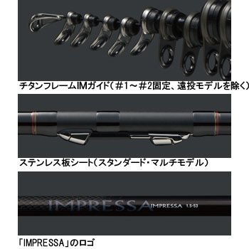 impressor,모든 것은 여기에서! ●충실 라인업에 현대의 상등품 낚시에 뚜렷하게 대응하는 해변의 스탠다드 로드.blank《스》의 나사《레》를 배제하여 파워와 조작성을 향상 시킨다「X45」고, 그리고 절의 호주상속인에게 생기는 붕괴되를 억제해 부드러운 구부러짐과 파워 전달을 재촉한다「V-조인트」를 전아이템에 탑재하고, 하이 레벨의 기본 성능을 확보.《기》《레》가 있는 컨디션과 부드러운 구부러짐으로,별안간 먹게 되는 거물도 주도권을 주지 않아 단번에 뜨게 한다.고강도&고감도의 메가 톱을 배치 한 스탠다드 모델에 덧붙여,주류 낚시를 비롯한 파워 게임용의 HR,기동력 넘치는 멀티 길이 사양의 M,바구니 낚시나 헤엄치게 해 낚시에 대응하는 원투타입를 라인업 하고, 상등품 낚시의 주력 타겟인 흑도미(감성돔)나 벵에돔(그레)서는 물론,제방 주위의 전갱이나《아오리이카》,낙도의 대형 회유어까지 커버.아이템 각각으로 전용의 설계와 사양을 주고, 용도에 따른 베스트인 밸런스를 지향했다.●메가 톱●X45●V-조인트●고밀도HVF카본●티타늄(티탄) 프레임IM가이드(#1~#2고정,원투 모델을 제외한다)●스테인레스 판 씨트(스탠다드 멀티 모델)●원장대에는 확실한 기본 성능과 엄선한 상징이다「IMPRESSA」의 로고가 빛난다.●미끄럼방지 부착 엔드 그립●릴을 제대로 고정하고, #등부를 막는 다이와 오리지날 파이프 씨트(HR원투 모델).