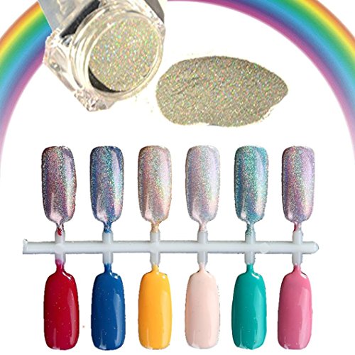 -. Title : Nail Mirror Powder, Fullfun 1.5g/Box Rainbow Holographic Nail Powder Laser Chrome Nail Glitter