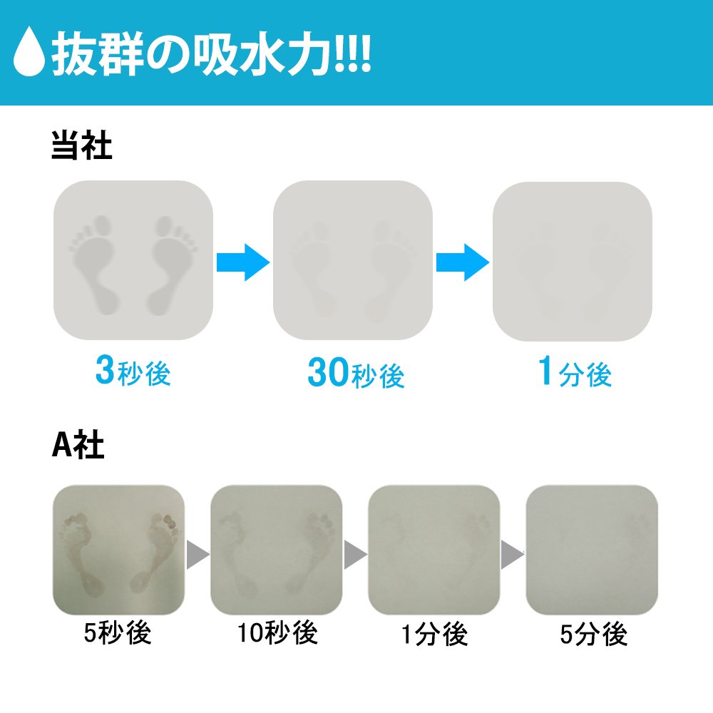 The water absorption speed & water absorption is dramatically improved, and traces of water are almost invisible at about 15 seconds.