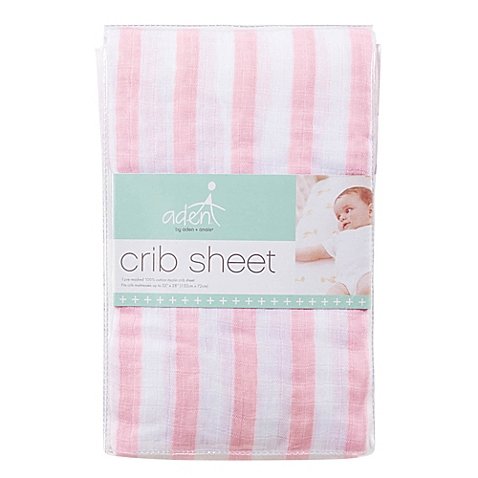 -. Title : aden® by aden + anais® Muslin Fitted Crib Sheet in Pink Stripe