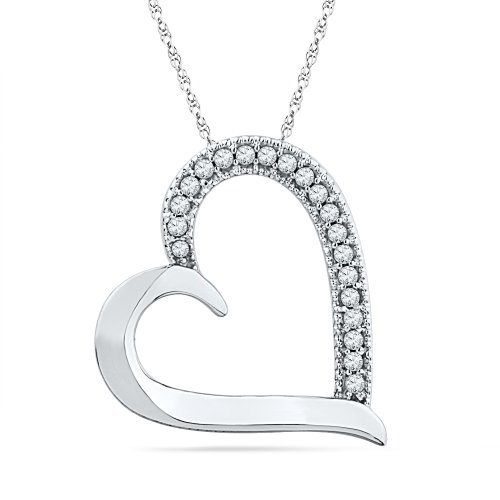 10KT White Gold Round Diamond Heart Pendant (0.10 cttw)
