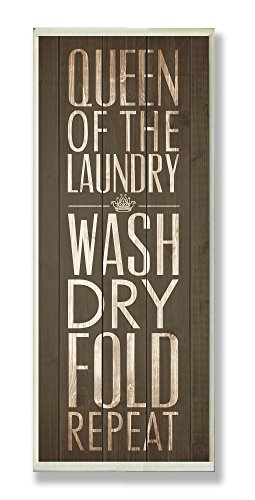 Stupell Home Décor Queen Of Laundry Typography Black Bathroom Wall Plaque, 7 x 0.5 x 17, Proudly Made in USA