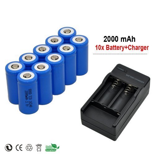 Yueling@ 10x 2000mah 3.7v Cr123a 16340 Li-ion Rechargeable Battery +Charger for