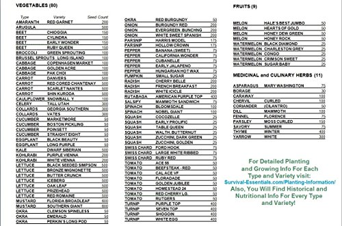 Survival Essentials 100 Variety Premium Heirloom Non Hybrid Non GMO Seed Bank – 17,880+ Seeds - All In One Super Value Pak…Veggies, Fruits, Medicinal/Culinary Herbs – Plus FREE Microgreens Kit.