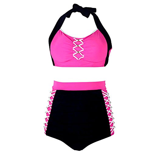 Title : Dreaweet Mesh Halter Push Up Women Swimwear Plus Size High Waist Bikini Set(FBA),Pink,XXXXXX-Large